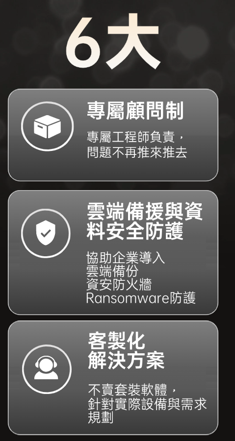 維修、資安、採購、權限管理、到府支援,全交給我們