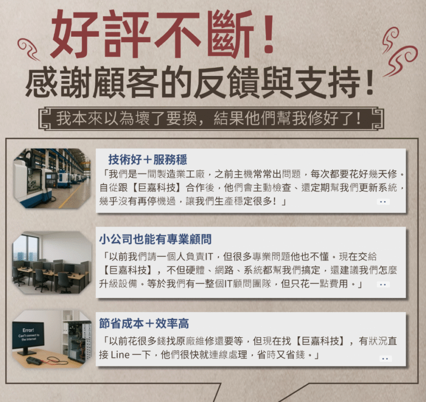 真的很感謝 電腦監控大師 團隊,讓我的公司 IT 安全往上升了好幾個層級!💪