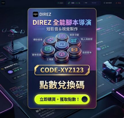 【DIREZ 爆款腳本導演】官方授權點數兌換碼|一站式 AI 影音創作神器|短影音腳本/分鏡/AI繪圖/動態腳本 快速生成