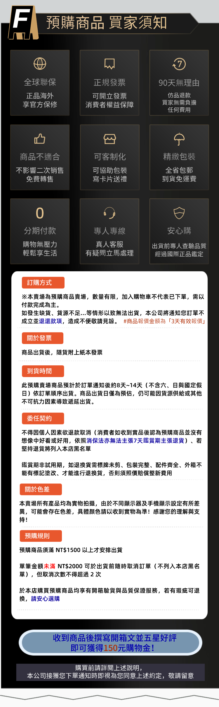 預購/代購商品 需滿 NT$1,500(含)以上才會安排出貨。