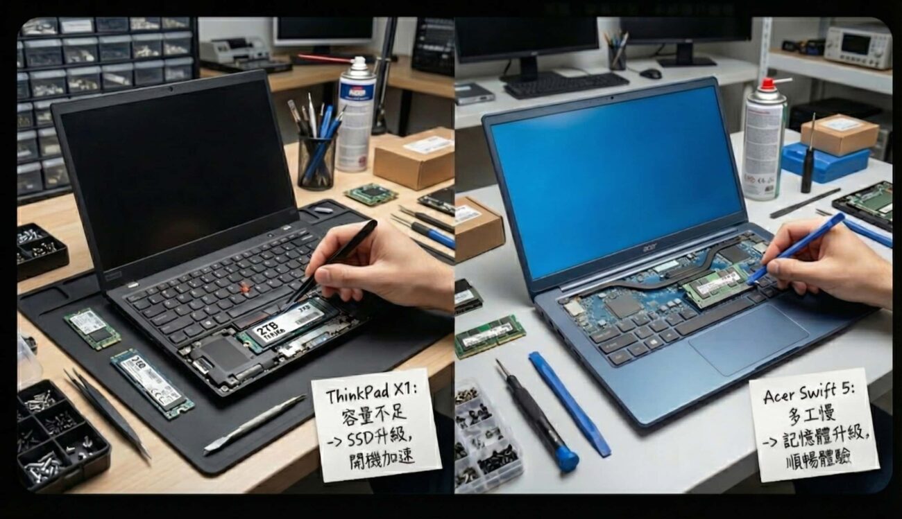 升級為更大容量或更高速 SSD,提升讀寫效率與儲存空間。
