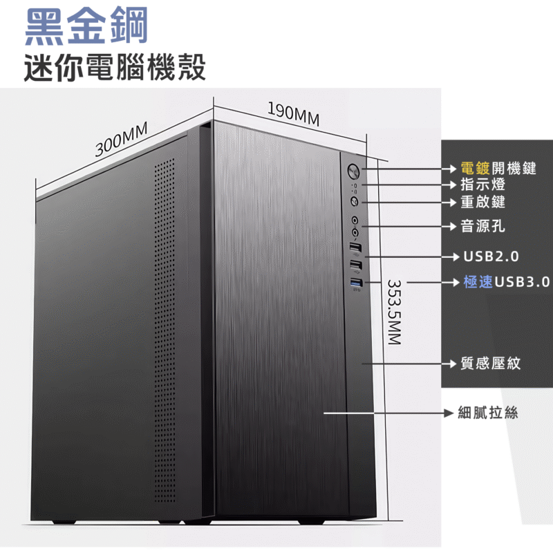 【簡約商務辦公】黑金鋼迷你電腦機殼 M-ATX|霧面黑鋼質外殼|高效散熱 × 輕巧實用|裝機首選