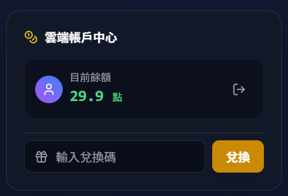 輸入代碼:在「輸入兌換碼」的欄位中,貼上您購買的專屬序號,點擊黃色「兌換」按鈕,點數將立即匯入您的目前餘額!