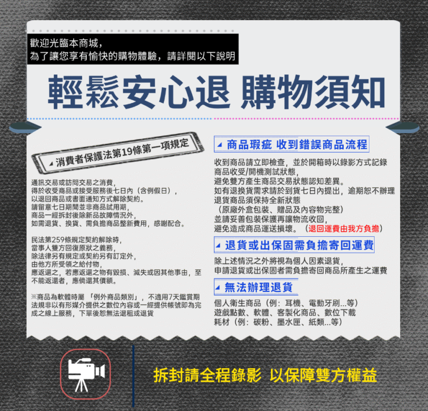 💡 提醒您!以下情況將無法為您辦理退貨,煩請留意免影響您的權益。
