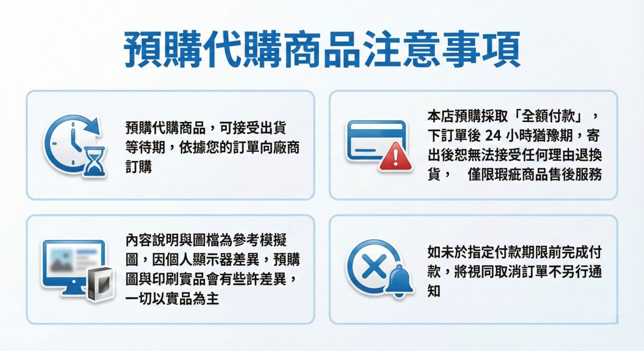 預購/代購商品 需滿 NT$1,500(含)以上才會安排出貨。